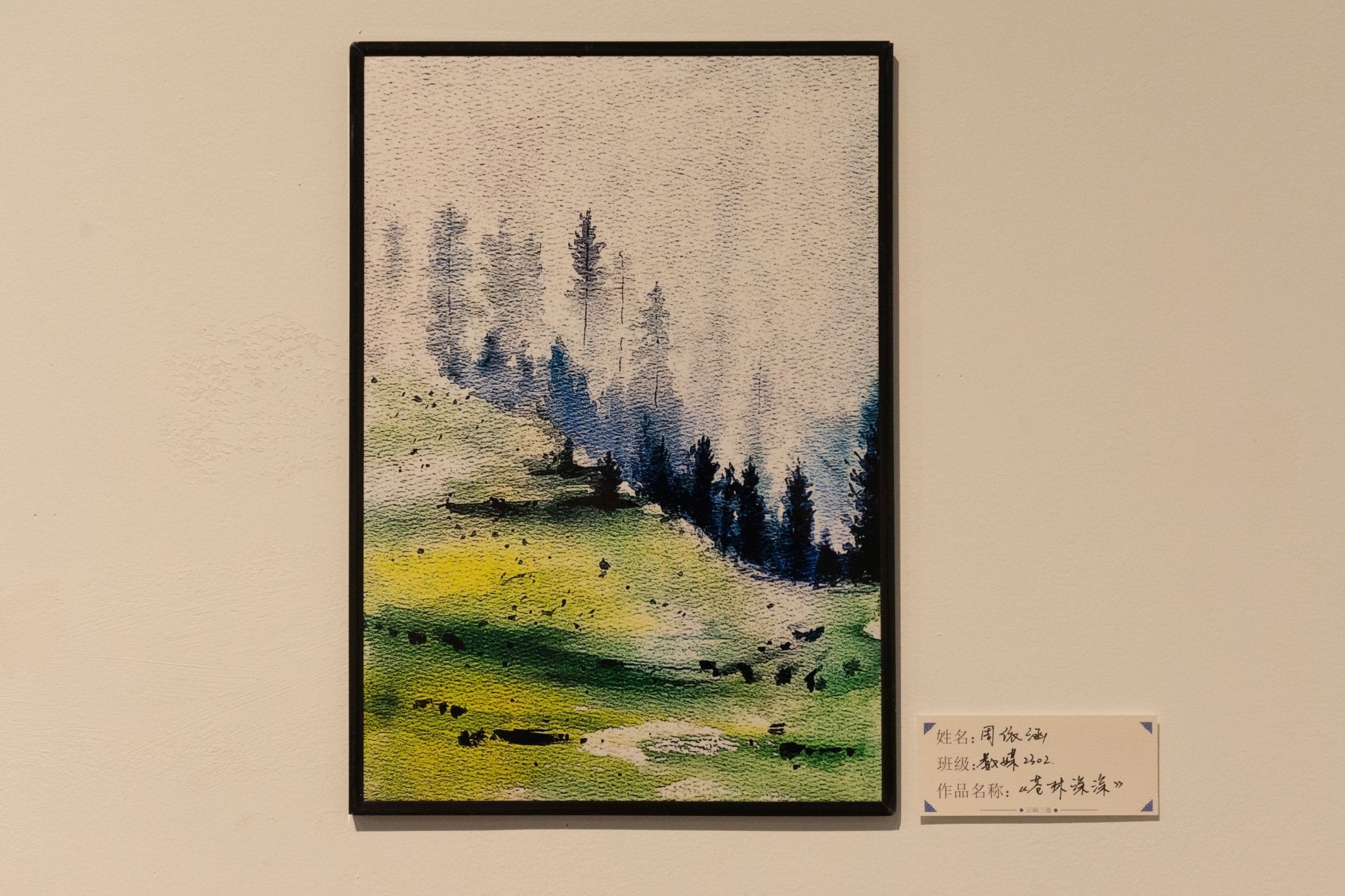 绘画作品《苍林深深》(学通社记者 刘晓桐 摄)